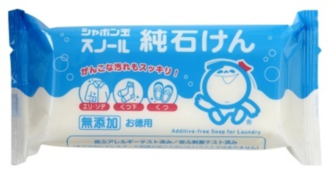 ●エリ、ソデ、くつしたはもちろん、上履きや体操服、ベビー衣類、スタイ、布オムツ、足 袋などがんこな汚れの部分洗い用の洗濯石けんです。